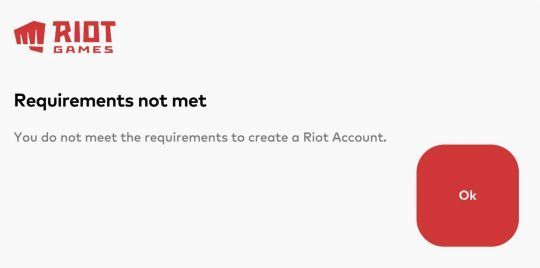 5、登录游戏内显示“Requirements not met You do not meet the requirements to create a Riot Account.”需要你绑定一下你的拳头账号,其中还要填写生日,如果没写年龄的话就会出现这个。