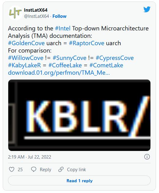 英特尔的第 13 代 Raptor Lake 系列 CPU 会采用和第 12 代 Alder Lake 相同的核心架构,但会有性能上的优化。小道消息人士 @InstLatX64 从英特尔自顶向下的微体系架构分析(TMA)文档中确认了这条消息。