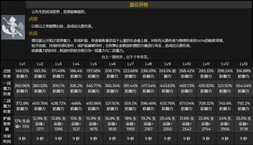 元素爆发会将云堇54.67%防御力(此为9级数值,12级时64.32%)用作提高全队的普攻伤害。如何理解呢?假设你使用的是优菈,在云堇大招的加持下,普通攻击将提高云堇防御力*54.67%*(优菈暴击伤害+100%)*(优菈的增伤区+100%)*(1-目标抗性)*目标承伤。