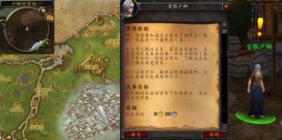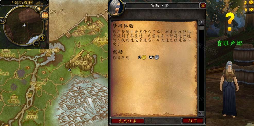 完成NPC:盲眼卢娜(灰熊丘陵,卢娜的营地)
