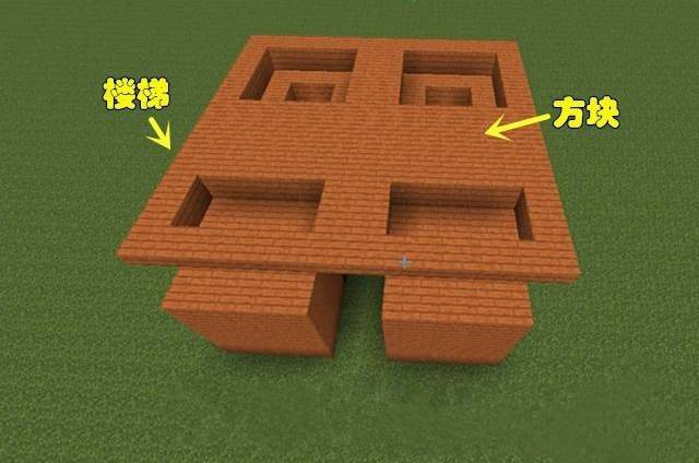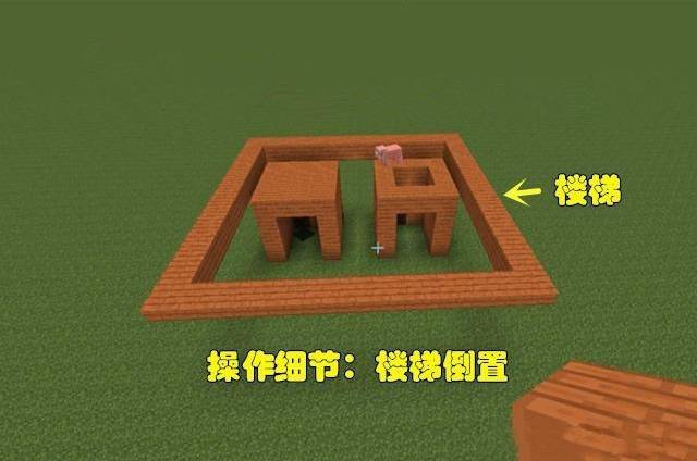 3.先把两个前面的腿部建造,再以它们为参照物,用倒置的楼梯按照上图确定躯干主体大小,如下图所示。