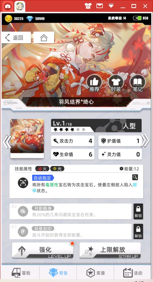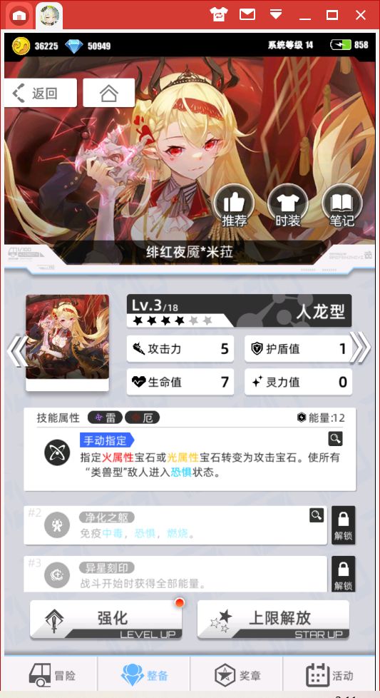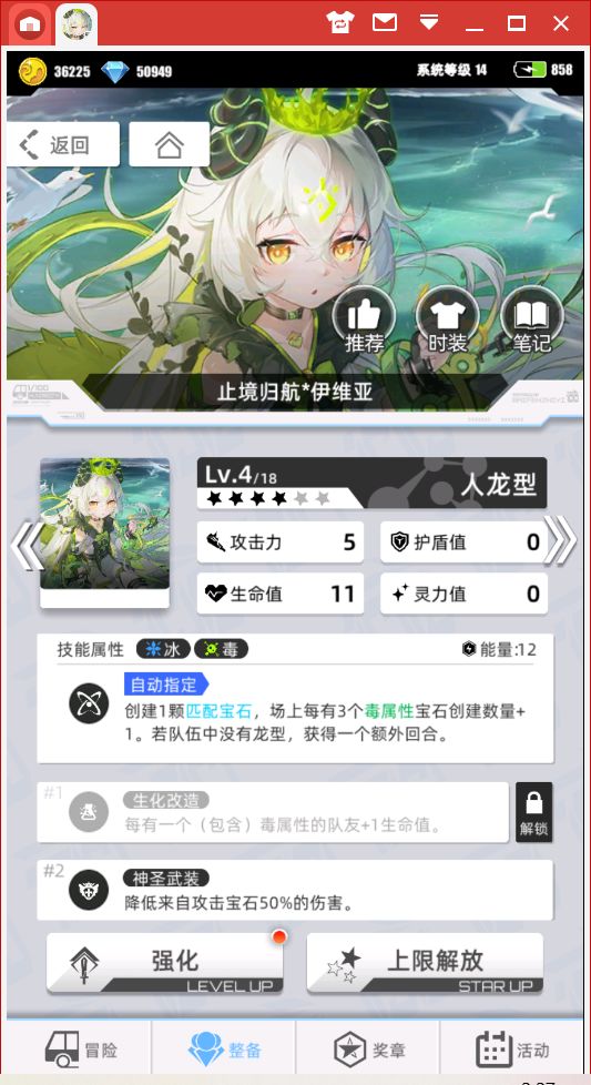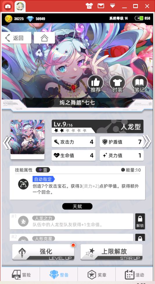 3、好的,既然这个套路有短板,那么我们就要想办法弥补这个短板,我们经常能在直击队里面看到这张单卡(是胎1,我升了1星变2星了),这张单卡是无限流常用组件,用来提高容错率的,因为可以获得一个额外回合,所以会让队伍的整体流转变得相当稳定,但好巧不巧,她同样也是无限流中无限龙的一个组件。