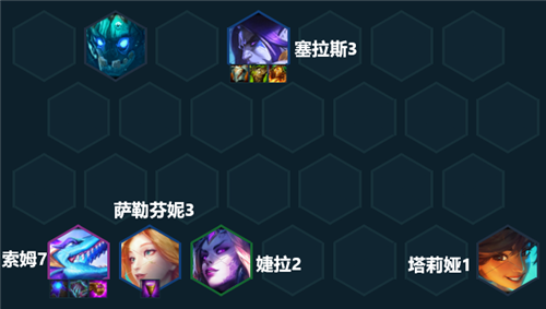尽快上八,大搜找齐2星索姆+1张佐伊阵容就基本成型,没有法转且有多余物理装备的情况下考虑把岩雀换成尼菈补输出。在8级把阵容的大部分搜到2星后就可以考虑上九或是在8级搜3星索姆/3星尼菈,如果已经有法转/碧波龙转是最好,婕拉可以稳定消化法转并在8级开出5法羁绊,后期有2星索拉卡可以代替婕拉吃法转,而碧波龙转一般给塞拉斯直接开9碧波龙。