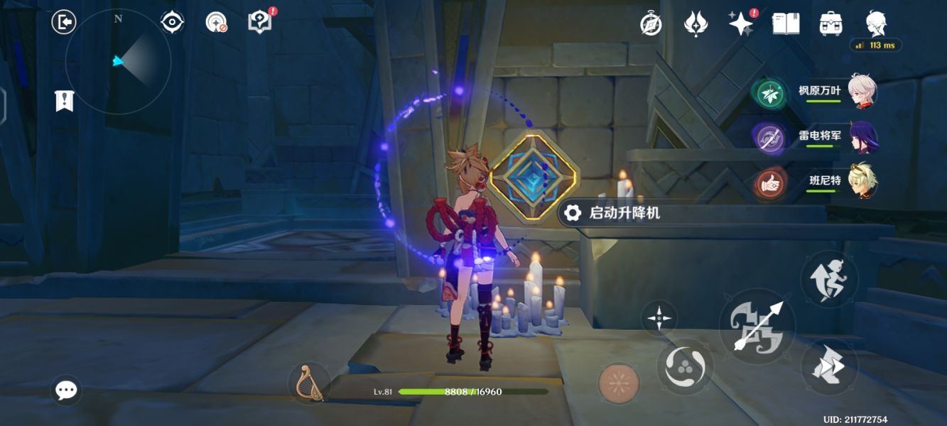 我们先在第二层启动升降机将升降机降↓第一层,这时候你会发现这一层石板得头上其实还有一块石板,我们需要的就是这快石板