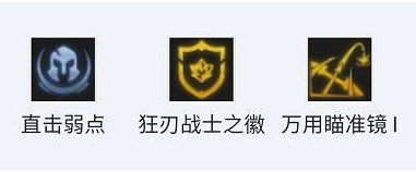 海克斯优先选择直击弱点、狂刃战士之徽、万用瞄准镜I,备选DD街区、屠龙勇士之徽、星界赐福II。