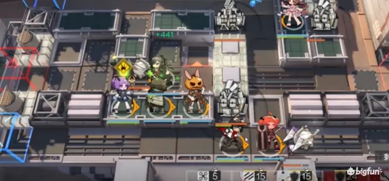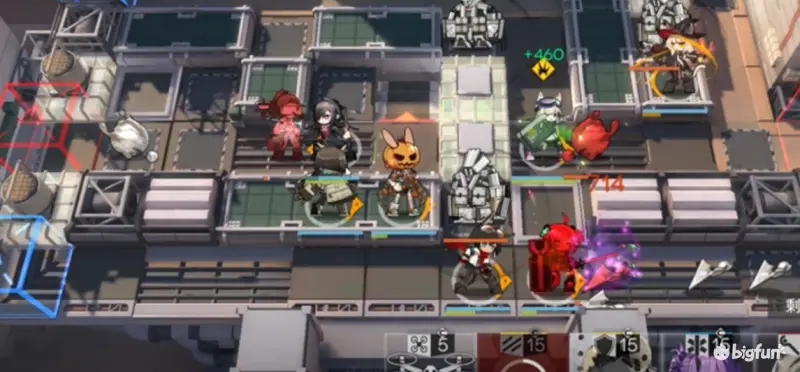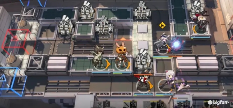 8.小羊使用技能清掉两台机甲后撤下,同时撤下狙击干员后部署一个术士去击杀最后一台装甲