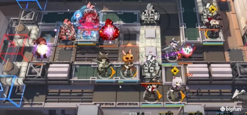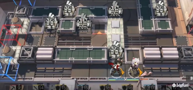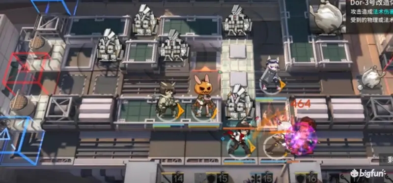 本关卡主要难点为清理左边场地三台机甲,因此需要部署两次艾雅法拉来对机甲进行清理,同时需要月见夜这种拥有法术伤害的地面单位来保证自己对怪物的输出和阻挡。