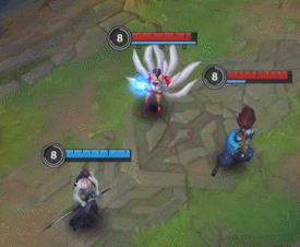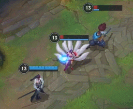 和亚索的一技能一样,可以攒风,有风之后会向目标方向突进,然后可以将敌人击飞。