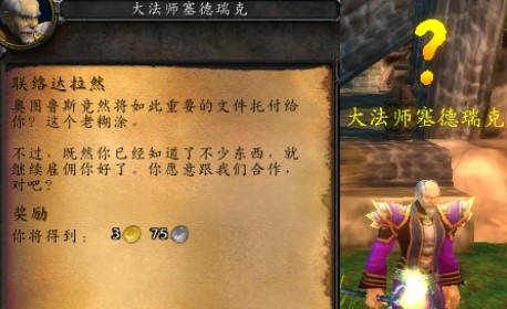 任务需要玩家们将奥图鲁斯的报告交给达拉然巨坑外的大法师塞德瑞克。