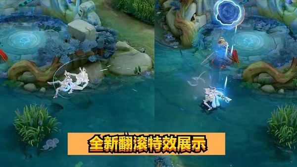 一技能特效:局内的技能特效也是非常有看点,首先一技能翻滚突袭的动作也经过了重新设计,相比其它皮肤来说变化很大,从图中可以看到释放技能后孙尚香会有一个空中翻滚,动作潇洒干练帅气十足。