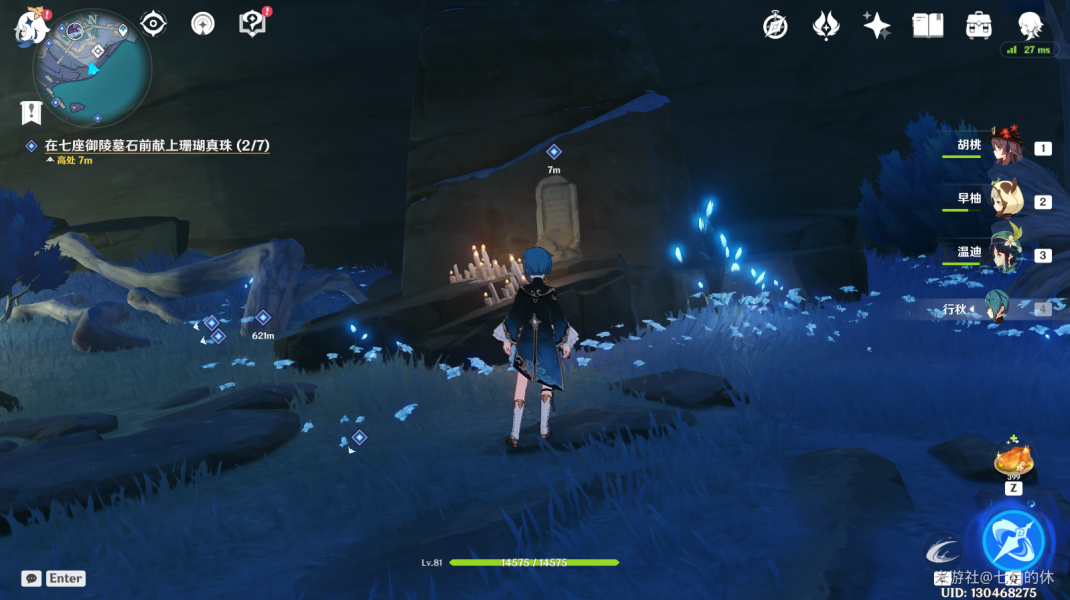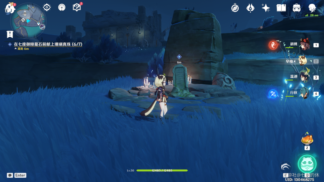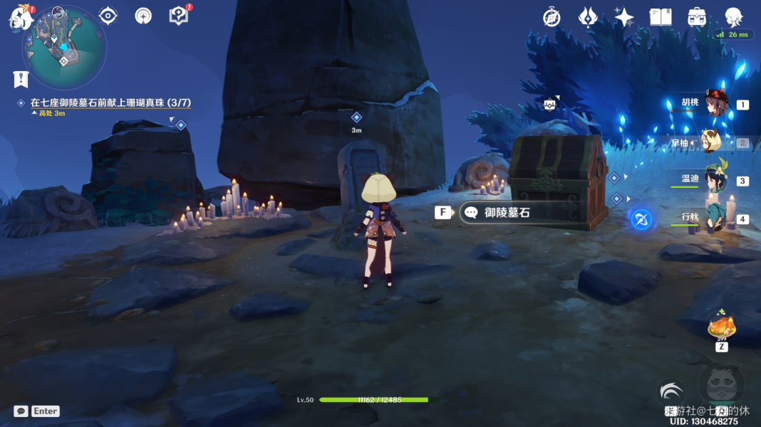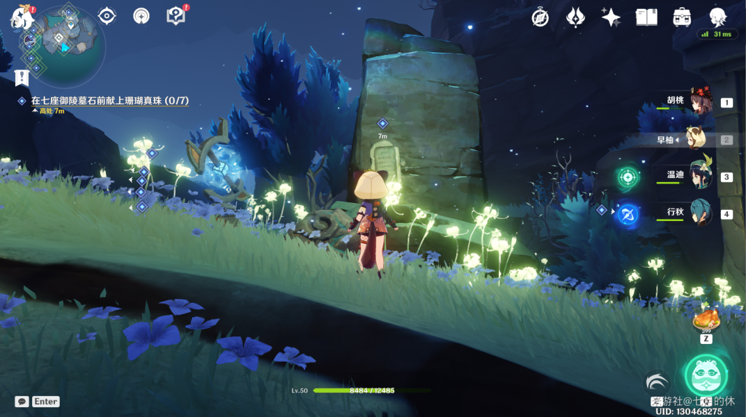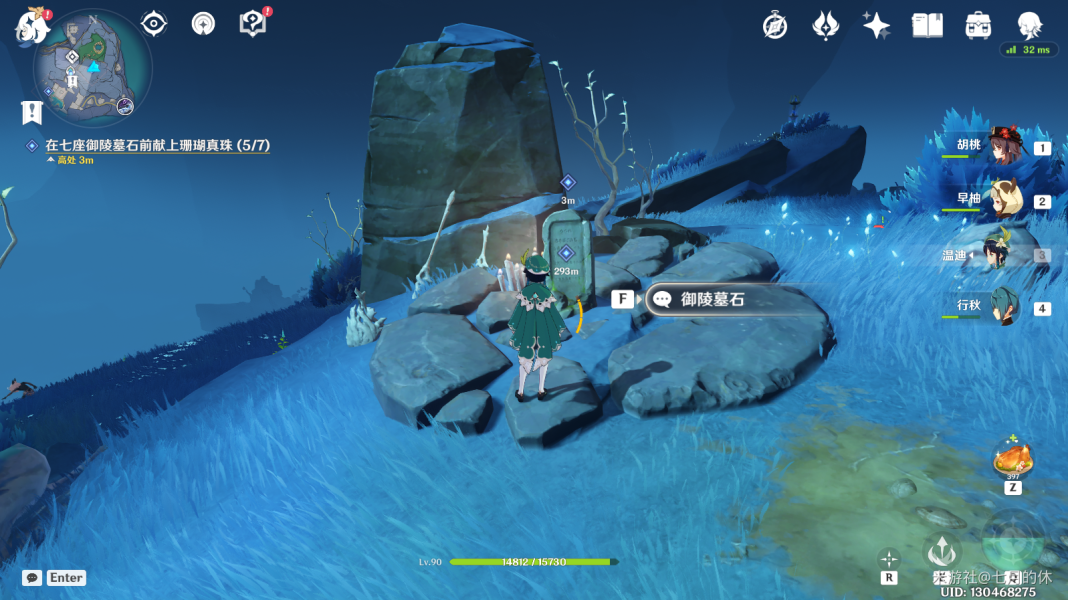 在下面这7个位置,与每个位置的墓碑交互一下,然后每个位置放1颗珊瑚真珠即可。