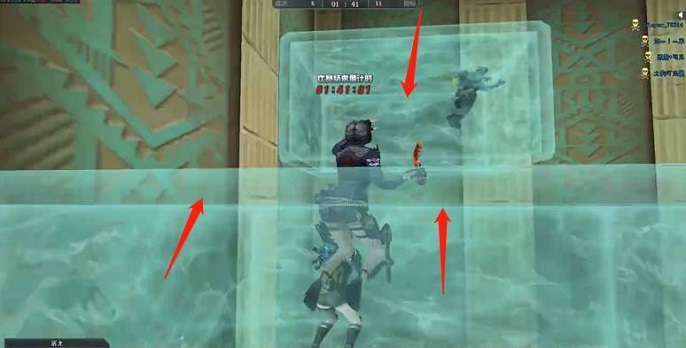 1、首先穿越火线多人跳跳乐来到水立方关卡时候,所有玩家在跳第三个水立方时候身体向下沉利用水向上浮的惯性向第四个水立方盒子跳动,然后玩家在规定的时间里同理以此类推跳过去即可。