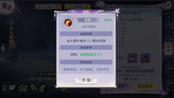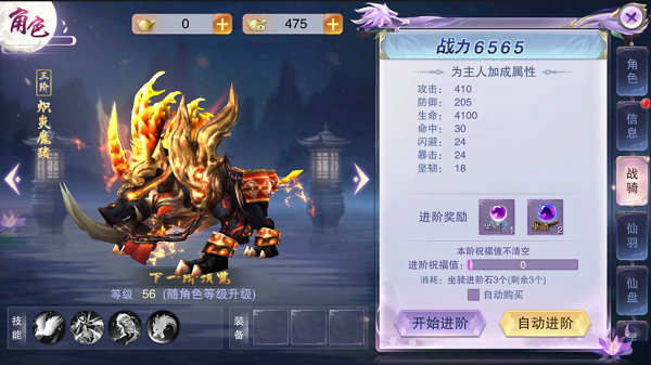 进阶形象进阶到指定阶数后会激活特殊技能。更有强大的伤害减免与伤害加成。伤害减免能够按照百分比减少角色受到的伤害。