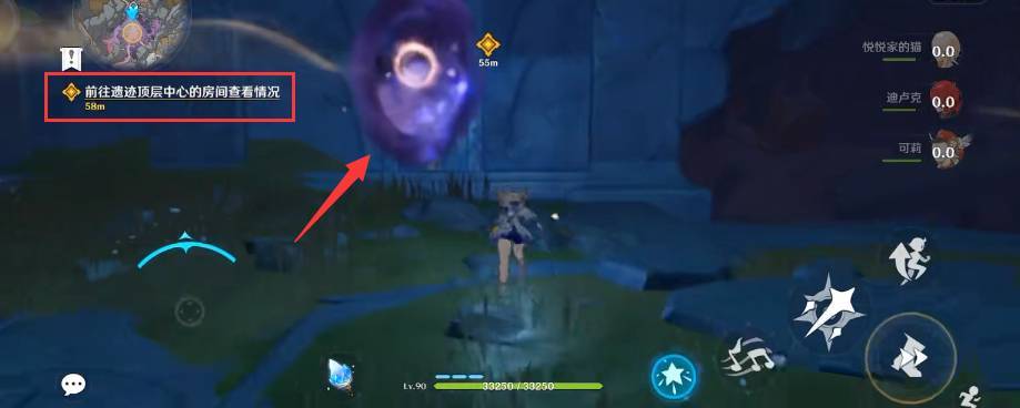 3、触碰紫色的雾即可进入任务区域,前方一处光束,靠近即可触发动画。