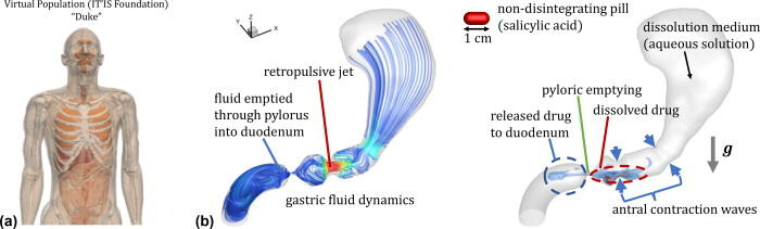 在Rajat Mittal教授的领导下,来自约翰-霍普金斯大学的一个团队开始研究哪种身体姿势能在最短的时间内将药片送到最低点。为了做到这一点,他们创建了一个人类胃部的计算机模型–StomachSim。该模型模拟了食物–或者在这种情况下是药片–被消化时在胃内发生的情况。