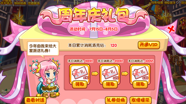今年的周年庆礼包从7月15日开启!持续到8月5日结束,大家请留意时间!请留意时间!