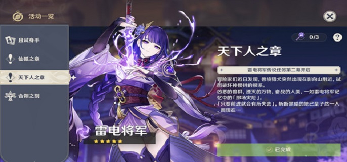 原神2.5版本更新后开放了雷电将军传说任务第二章的全新内容。