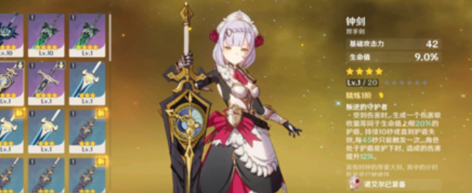 首先钟剑目前最适合的角色有三位,分别是【辛焱】、【诺艾尔】和【北斗】。因为武器技能必须在【护盾庇护下】才能触发增伤效果,换言之就是有护盾技能的双手剑角色都能触发。