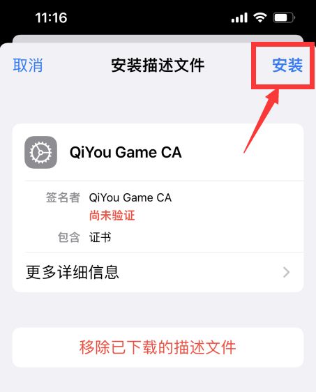 复制以下链接:https://static.qiyou.cn/tmp/ios/pki/qygame.cer