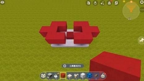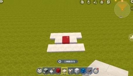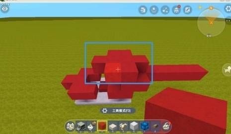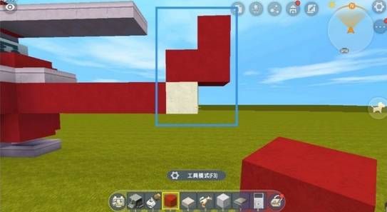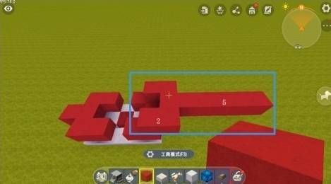 3、在右边的红色方块上放一层红色硬沙块,看好尺寸。
