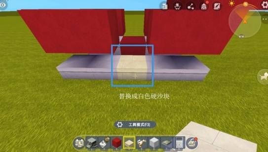 10、把硅石台阶换成白色硬沙块,在上边放门。