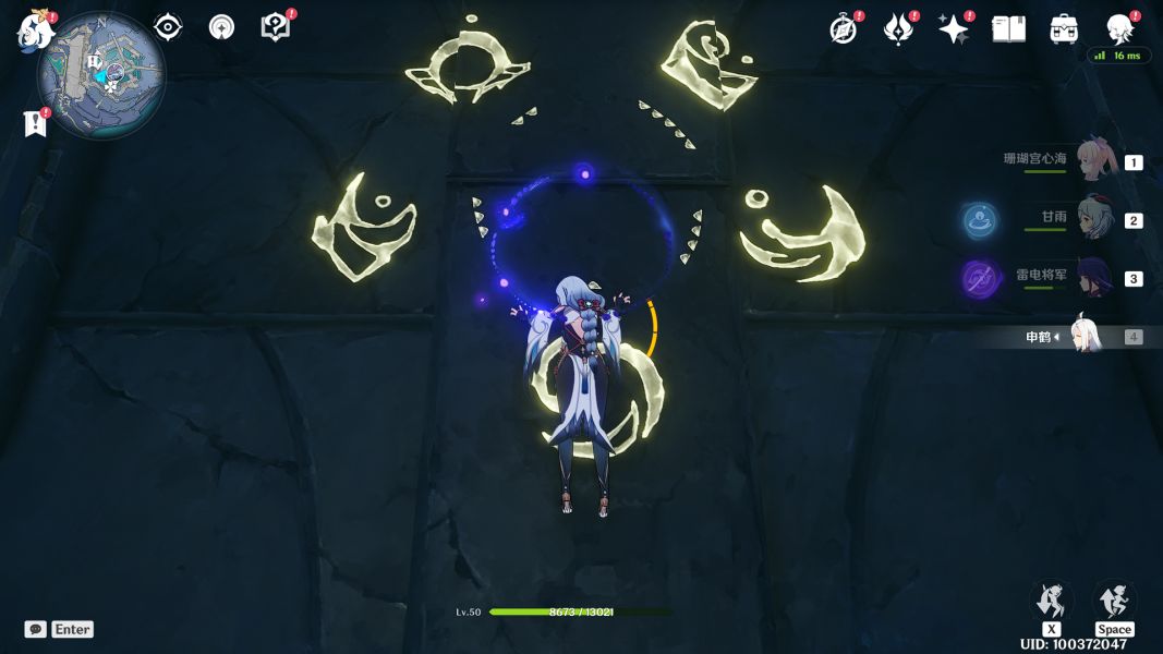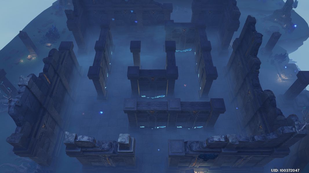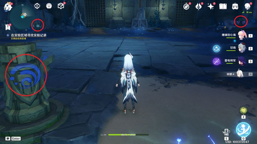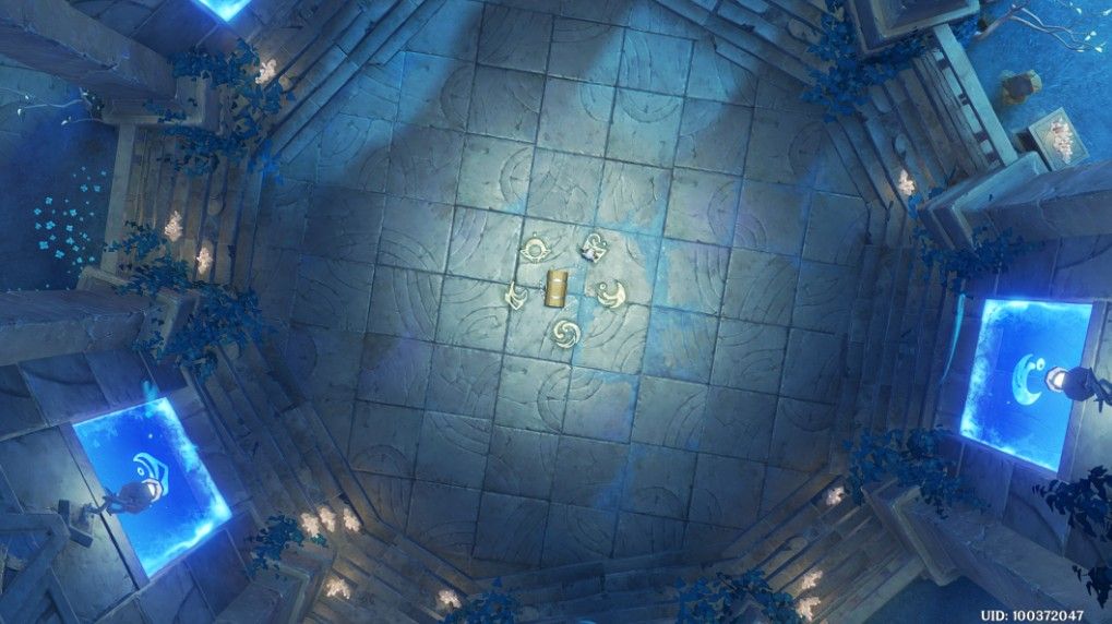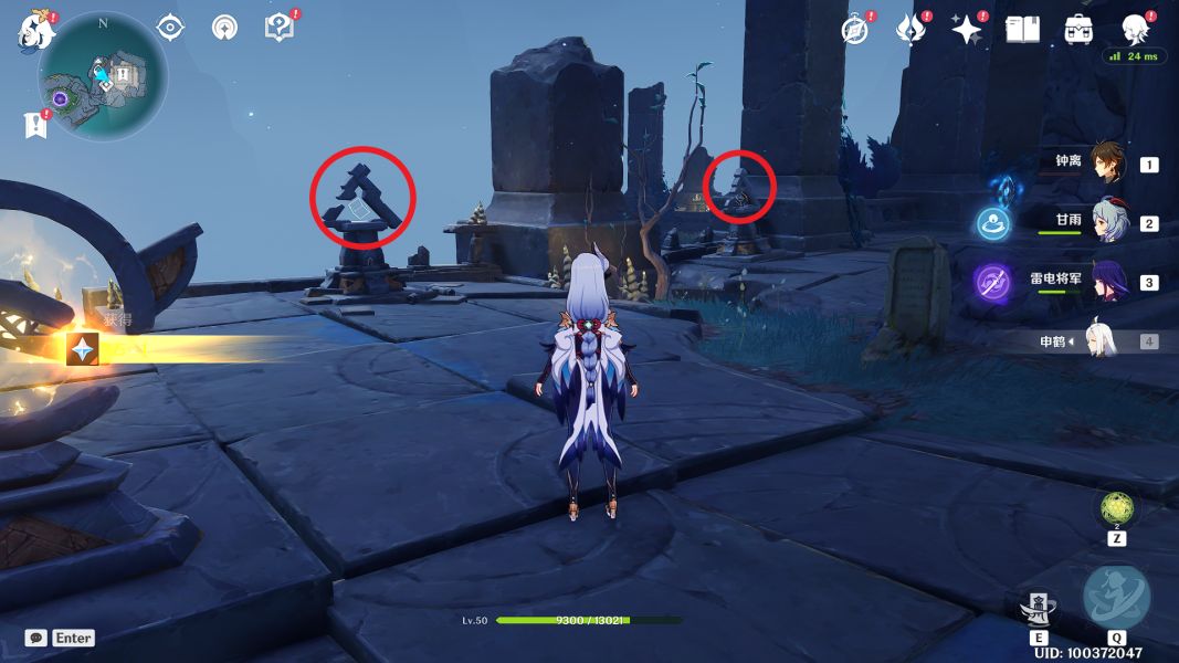 如图所示,前往四处发光点,用水元素激活方碑即可
