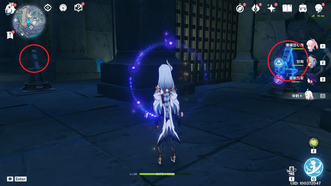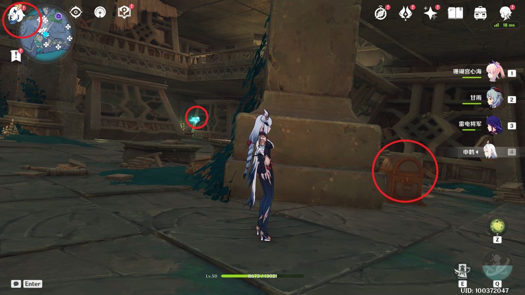 3,此处有一个华丽宝箱,一个仙灵,一个键纹(左上角)