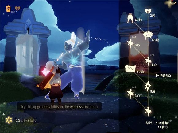 3、灯笼裤先祖兑换大致需要131白蜡烛,2红蜡烛,14爱心。