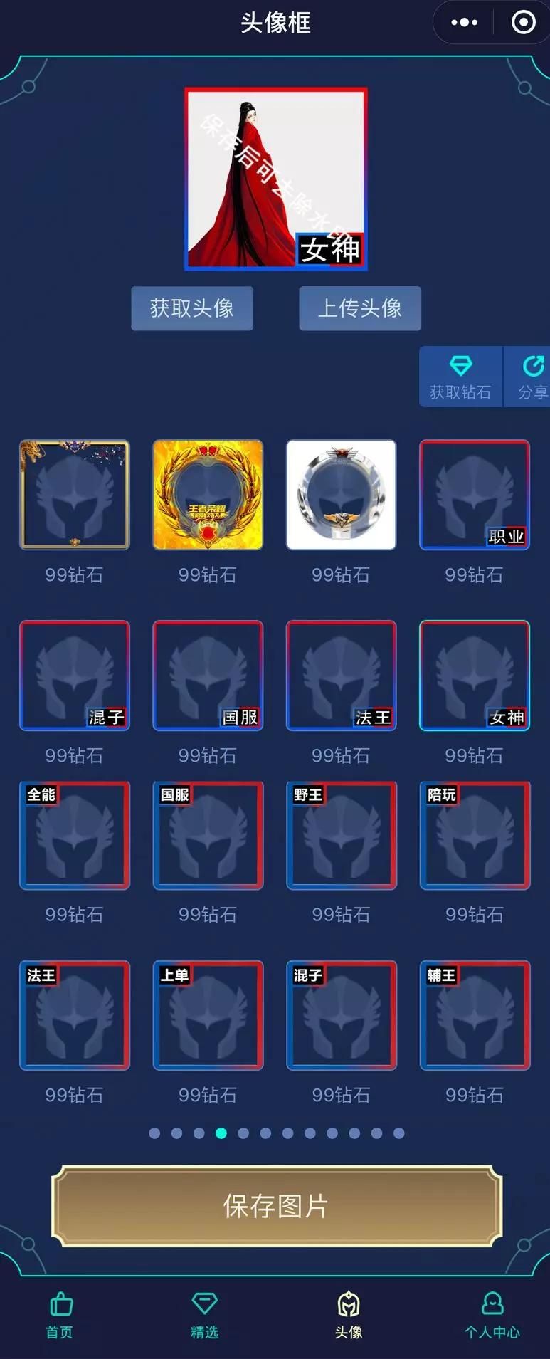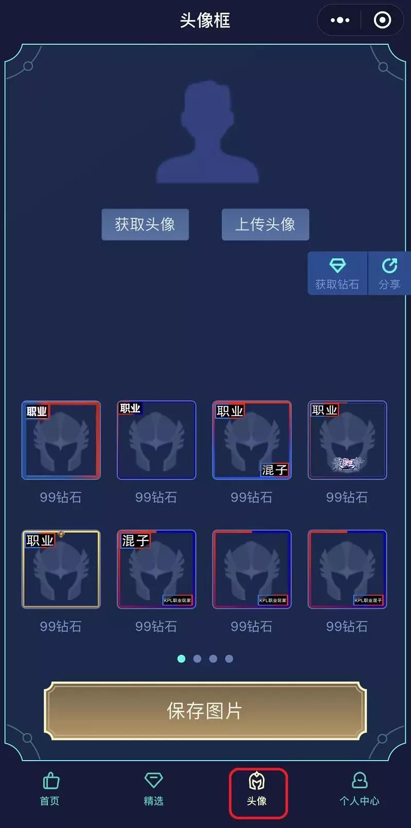 第二步:点击【获取头像】或【上传头像】,头像像素在800左右效果最佳。选择喜欢的头像框查看效果。