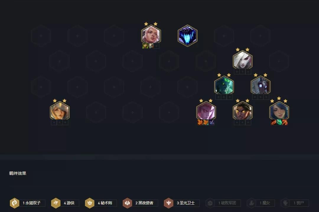 关键羁绊:4游戏+3圣光+4秘术。阵容主C艾希,副C月男,主坦芮尔。