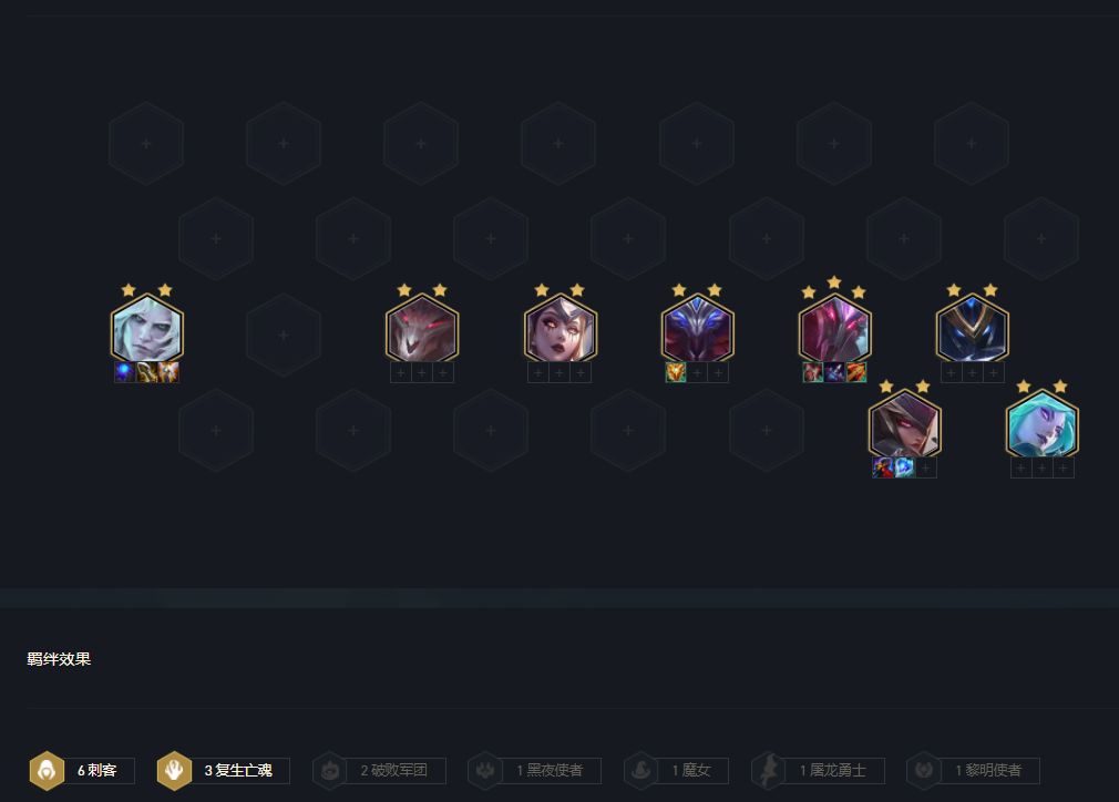 复生刺阵容,在这版本依然很强势,吃分比较稳定,但对站位与装备要求较高,特别是黑基克、轻语、冰心、黑鸟盾最好全有。但只要装备契合,很容易吃分甚至魔腾不三星都有概率吃鸡。
