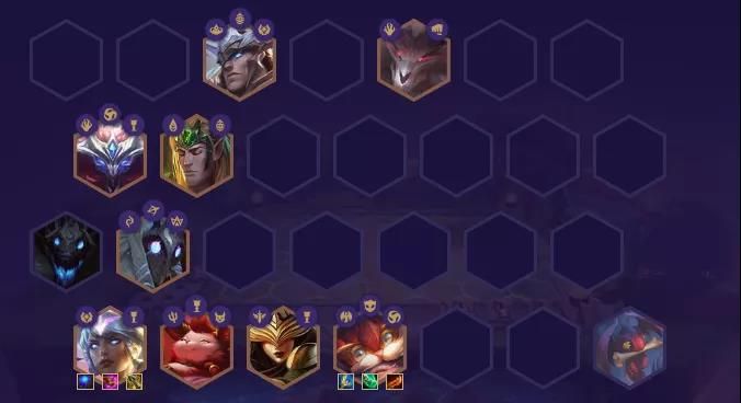 此套阵容高费卡居多,不过由于当前版本神仙打架,多人口羁绊肆虐,我们必须提高质量才能保证吃鸡!盖伦充当前排,抗住伤害的同时还能AOE削减敌人魔抗,卡尔玛和大头作为输出主力,伤害非常爆炸,加上千珏和辛德拉的保后排能力,让我们的阵容无懈可击!
