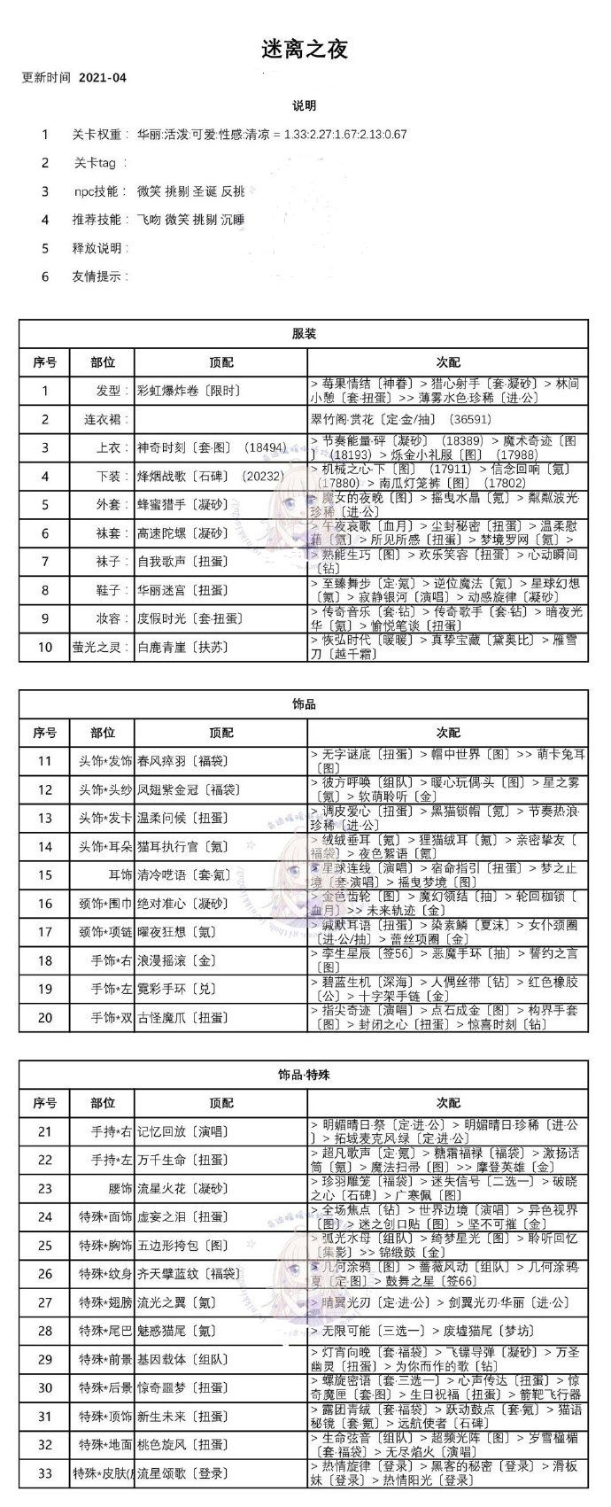奇迹暖暖迷离之夜高分搭配攻略:迷离之夜套装搭配推荐