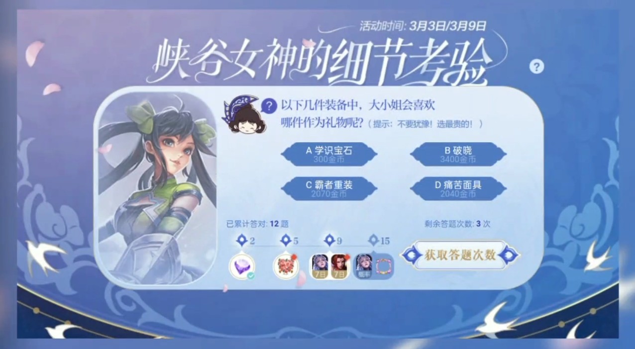 以下几件装备中,大小姐会喜欢哪件作为礼物呢?
