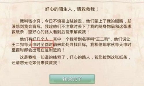 找到之后根据任务提示完成,完成之后回到官府找李捕头领取任务奖励。