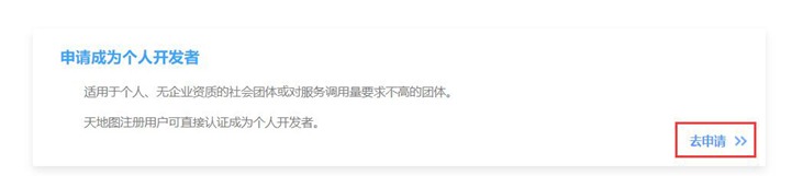 个人注册的用户,选择[申请成为个人开发者],点击【去申请】。