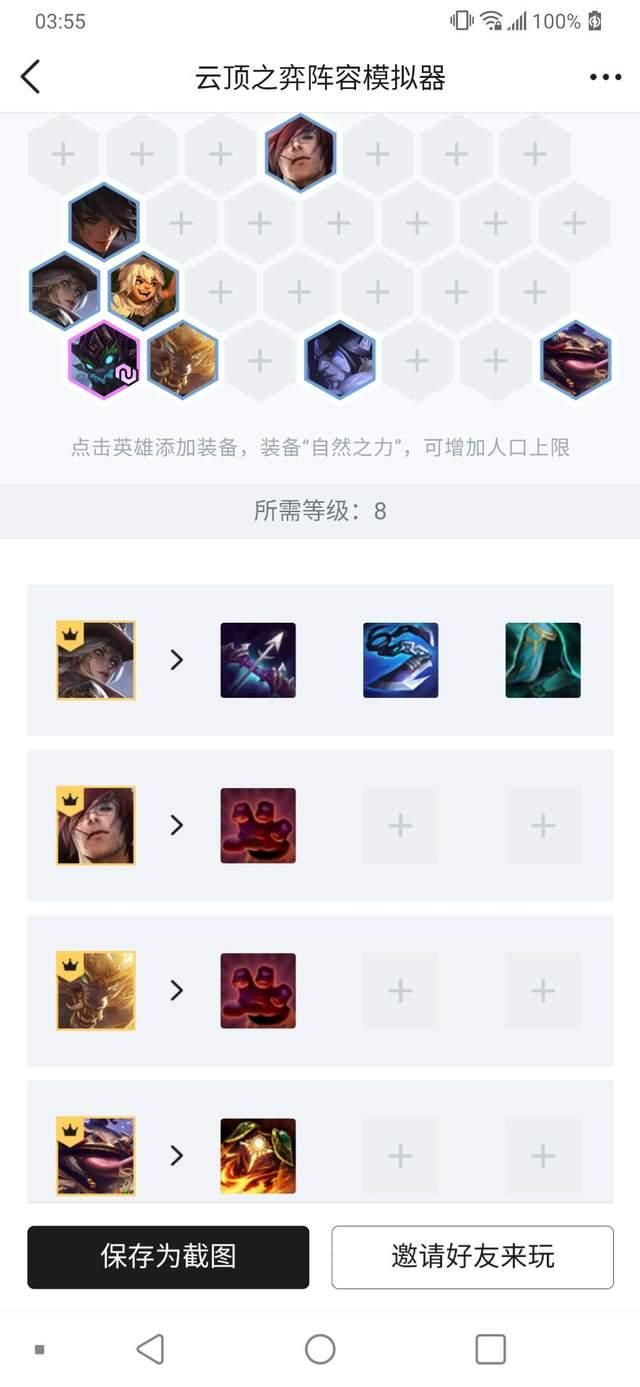 一路升到8人口,可以开始刷新一下,保证阵容成型或者差不多都二星了。