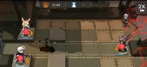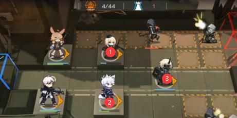 开局如下图所示按照克洛丝 → 安德切尔 → 夜刀的顺序摆放,狙击都朝右,夜刀用来抗一下前期炮兵的伤害,在要被打死前撤退回费。
