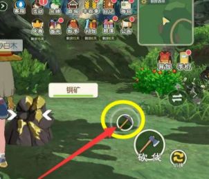 4、看见铜矿之后,点击即可切换工具,挖矿即可。