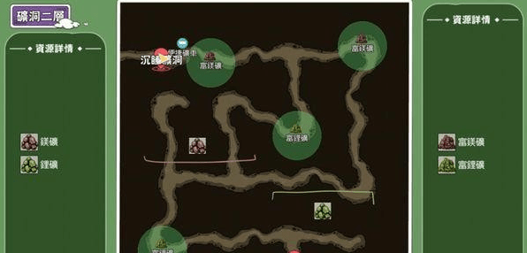 闪闪发亮的那些就是富矿,跟普通矿的不同在于会掉落除了矿,也会掉落砂。这个地图本来标示富矿的地方似乎不一定有富矿。关于富矿的出现条件,可能需要再研究,也可能跟一层一样是随机的。