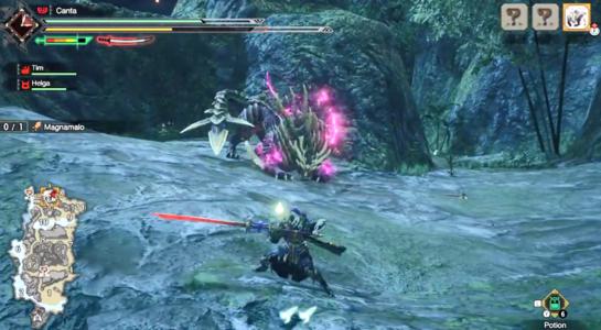 界面左下角为小地图,玩家可以在此处查看玩家、大型怪物和任务目标所在位置。
