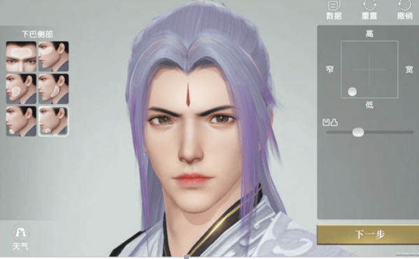 在这里,我们主要要做的要把下巴两侧的指标向窄、低象限靠拢。但有也有一点需要注意:由于男性角色的面部棱角其实很明显,我们要在脸的多个部位一起调整效果,让面部棱角更加自然才好。否则就会显得有些生硬啦。