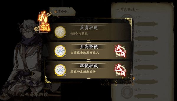 第一回合:首先将霍雍往上走一格,再把冰璃走道霍雍之前的位置,冰璃的执剑奉行技能是完成成就的关键