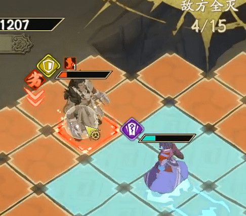 第三回合:霍雍向上走一个点掉最后一只雷狼,冰璃自杀式攻击打掉BOSS的血,并使BOSS进入【迟缓】状态,无法攻击刀霍雍