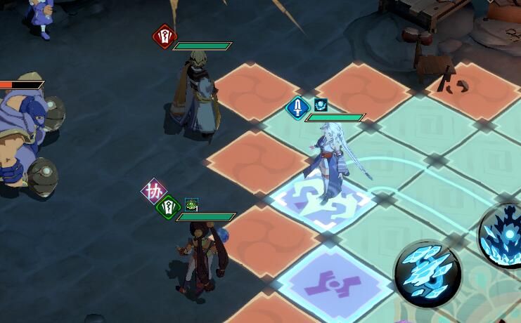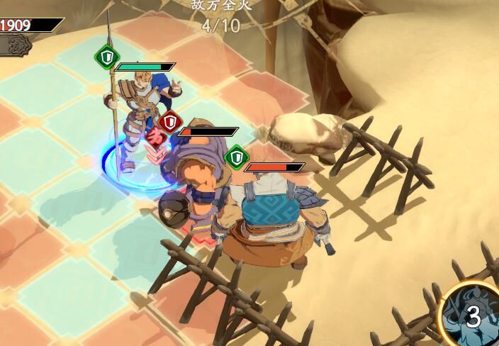 第二回合,冰璃飞刺打2个怪,然后连斩把弓箭杀了,夏侯到图中位置击杀刺客,然后璇玑清理面前的怪,我由于反击暴击了,怪已经死亡,璇玑往右边走