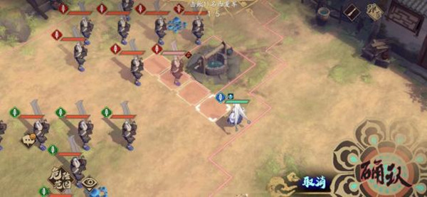 回合1,直接往上走不用管下面的蘑菇,横着穿刺到火人中间,回合结束,火人挨个上来领盒饭。
