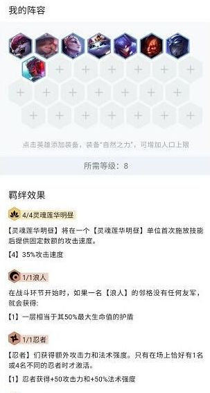 在开局的时候,你可以先将拳套这一装备拿到手,随后你就需要将穿甲弓和水银这两件装备拿到手,而对于2星的猴子或是德玛就需要先将鸟盾这一装备拿到手。在前期过渡的时候,你可以选择使用龙魂重装射手明昼羁绊来进行平稳过渡。
