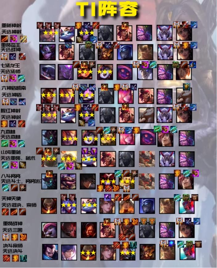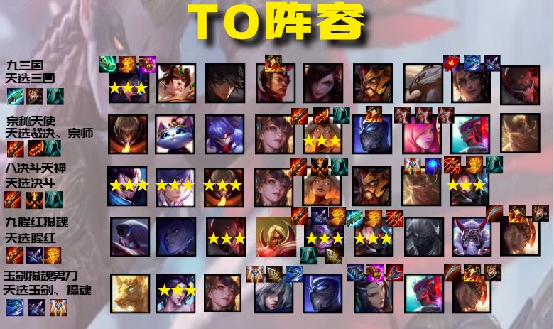 八决斗天神依然不是常规阵容,要求跟九三国是一样的,天选+转职+9人口,成型难度高,但是强度也是版本最强级别。