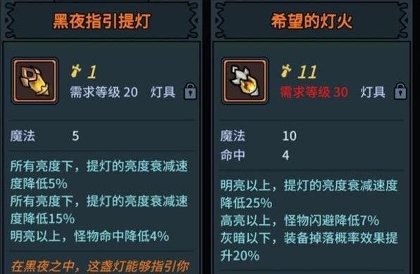 关于提灯和提灯亮度,提灯亮度影响怪物强度以及玩家收益,包括经验金币和兽蛋掉落。本作的难度较低,所以平时推图十分建议调至昏暗级别,以提高收益。高亮情况下怪物会比较弱,打不过BOSS可以调成高亮。对视野影响不大。