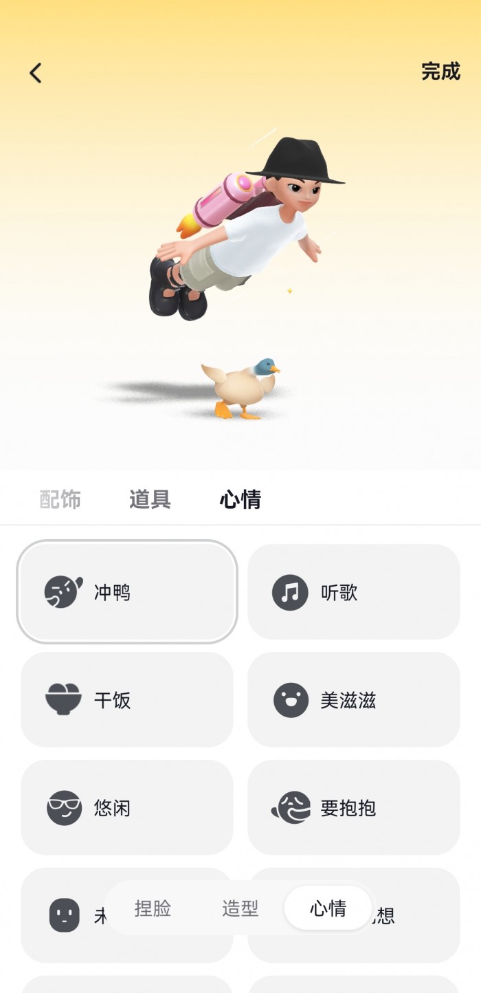 7、选择“我”——“使用抖音仔仔”,就能看到会动的头像了,选择不同的心情,头像动作也不一样,快去试试吧